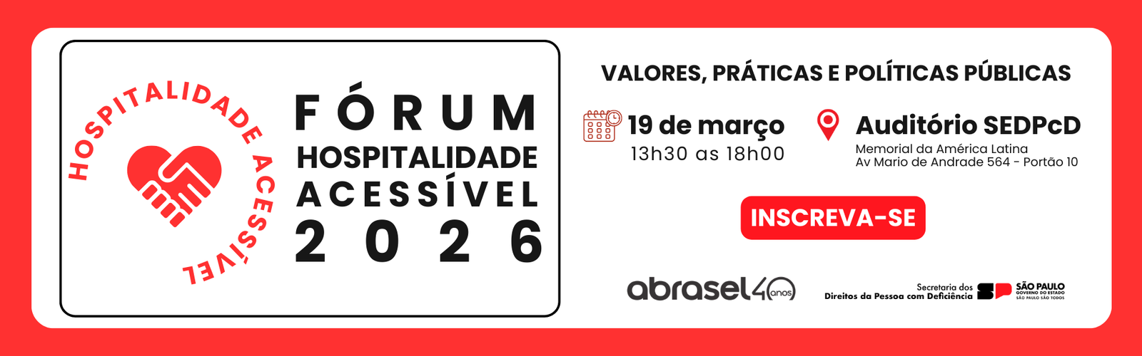 A Campanha Hospitalidade Acessível – Inclusão para Todos é uma iniciativa da Abrasel em SP, em parceria com a Secretaria do Estado dos Direitos da Pessoa com Deficiênia de São Paulo, O Objetivo é mobilizar bares, restaurantes, café e estabelecimentos gastronômicos de todo o Estado de Sâo Pauo a participarem do movimento, tornando seus espaços mais acolhedores e inclusivos.